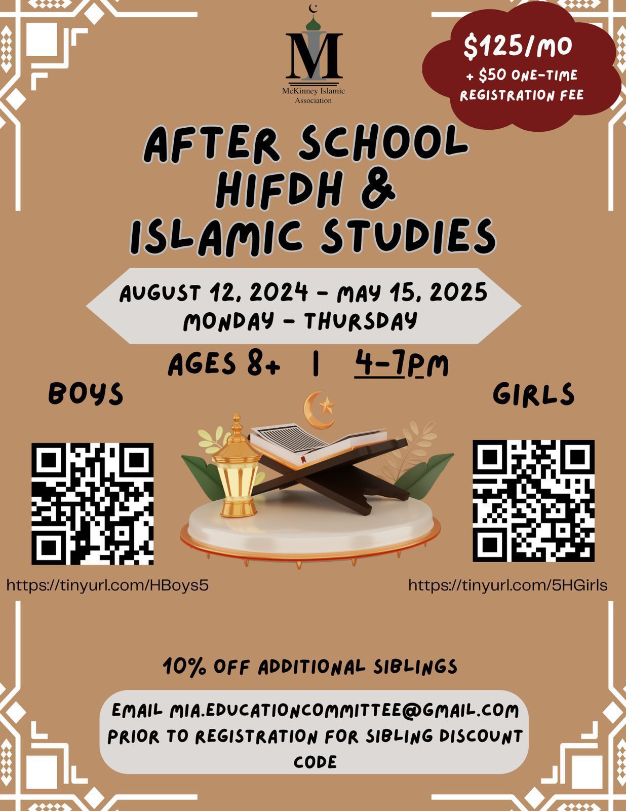 ? For sibling discount code, email: mia.educationcommittee@gmail.com